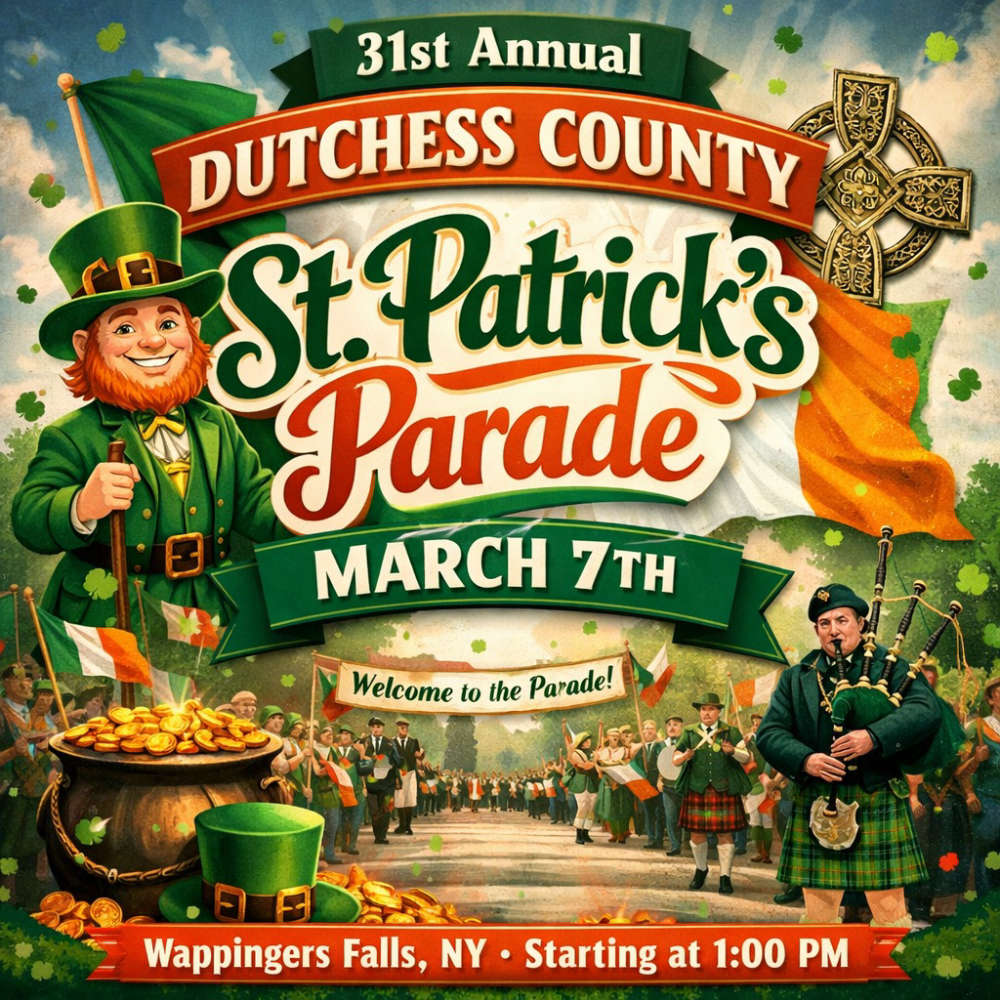 - ON SATURDAY, MARCH 7TH, WE’RE IN THE 31ST ANNUAL DUTCHESS COUNTY ST. PATRICK’S DAY PARADE—IT STEPS OFF AT 1PM ON MAIN STREET IN WAPPINGERS!